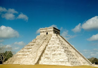 Die Mayas haben ohne Zweifel ihre Erkenntnisse in unzähligen Codices verewigt. Die aber wurden von den barbarischen Eroberern mit Enthusiasmus gesammelt und in gewaltigen Feuern verbrannt. Erhalten geblieben ist ein astronomisches Werk in Stein: die Pyramide des Kukulkan! Alle Jahre wieder bietet sie so etwas wie einen Film, eine »Lichtshow«.. mit der Präzision eines Uhrwerks: immer am 21. März und am 21. September kriecht Gott Kukulkan als Schlange aus Licht vom Himmel herab... und verschwindet wieder ins Himmelreich.