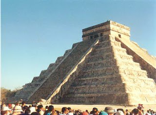 ... die Anbetung der Schlange, die vom Himmel kommt ... fortgeführt ... Es empfiehlt sich, sich möglichst nah bei den Ruinen eine Unterkunft zu suchen. Auf diese Weise kann man schon frühmorgens die Ruinenanlage betreten, ohne störende Besuchermassen Pyramide, Observatorium, Tempel und Opferbrunnen auf sich wirken lassen.