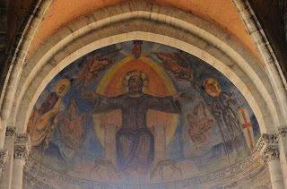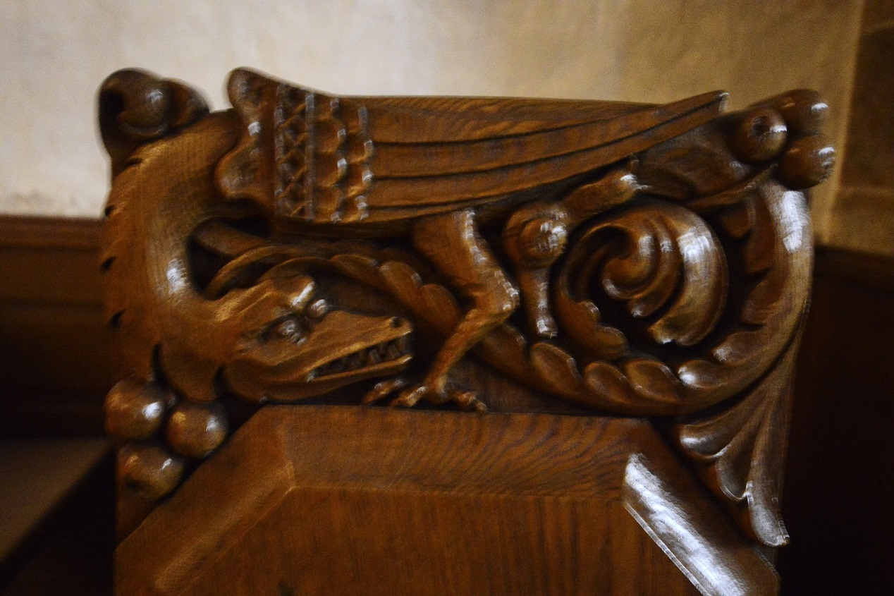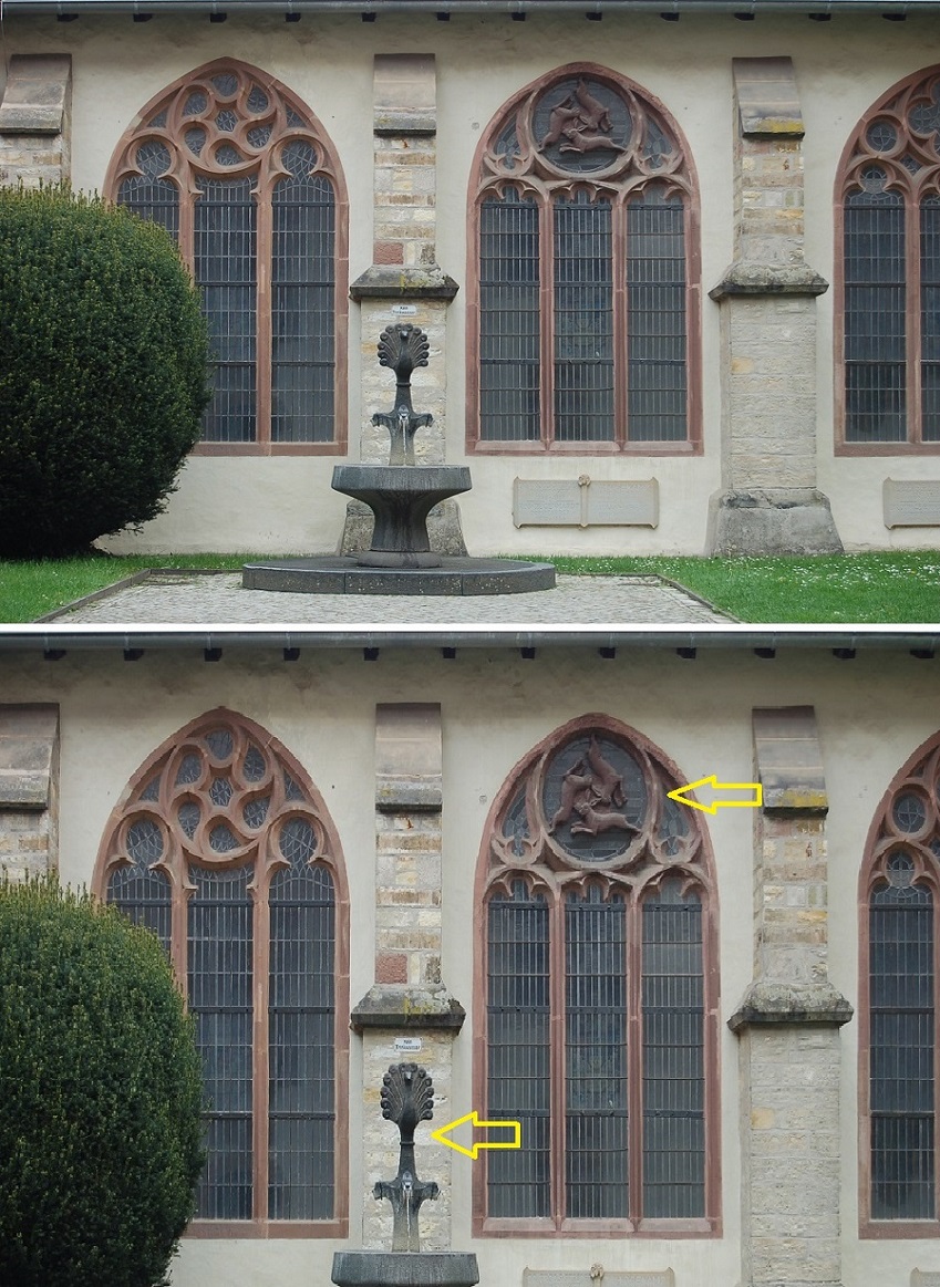 Besonders leicht übersehen wird am Handlauf der Treppe, die die Unterwelt der Krypta mit dem Kirchenschiff verbindet – natürlich ein Fabelwesen… Fazit: Fabelwesen allenthalten. Was aber mögen sie bedeuten? Sind es die berühmt-berüchtigten Allegorien? Wir fragen uns, wann ein bestimmtes Kunstwerk geschaffen wurde. Wichtiger aber scheint mir aber, wann geheimnisvolle Motive zum ersten Mal aufgetaucht sind und in welcher Form sie über die Jahrhunderte hinweg immer wieder zum Einsatz kamen. Frappierend ist es meiner Meinung nach, dass Drachen- und Monstermotive weltweit in unterschiedlichsten Kulturen zu unterschiedlichsten Zeiten in unterschiedlichsten Ländern auftauchen. Wer hat den Urdrachen wann und wo erfunden?