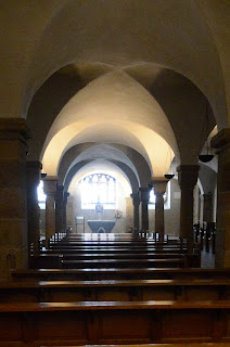 Die Krypta unter dem Dom ist als Ort der Stille und des Gebets gedacht. Natürlich habe ich beim Studium der Schnitzwerke Rücksicht auf Gläubige genommen. Fotografiert habe ich – ohne Blitz – nur, wenn ich allein in der Krypta war. So verbrachte ich manche Stunde im Raum unter dem Dom, der vor einem Jahrtausend vielleicht Reliquienschreine enthielt.