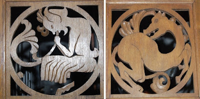 Fotos 2 und 3: Fabelwesen im Hamelner Münster