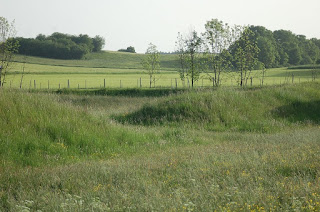 »Der große Burggraben« lautet der Flurname, der in entsprechende Karten von Riedenheim, Landkreis Würzburg, eingetragen ist. Keltenschanzen waren von Wallanlagen umgeben. Wollten Angreifer so eine Keltenschanze erobern, mussten sie erst einen oftmals tiefen Graben überwinden, bevor sie sich überhaupt an den schützenden Wall heranwagen konnten. Und oben stand ja die Abwehr nicht gerade untätig herum! Von Keltenschanzen blieben manchmal die Wälle, manchmal die Gräben übrig. Besonders tiefe Gräben waren manchmal noch zu sehen, wenn von der übrigen Keltenschanze nichts mehr übrig war. Wieder glaubte man, dass eine Burg längst abgetragen worden, der große Burggraben übriggeblieben sei.
